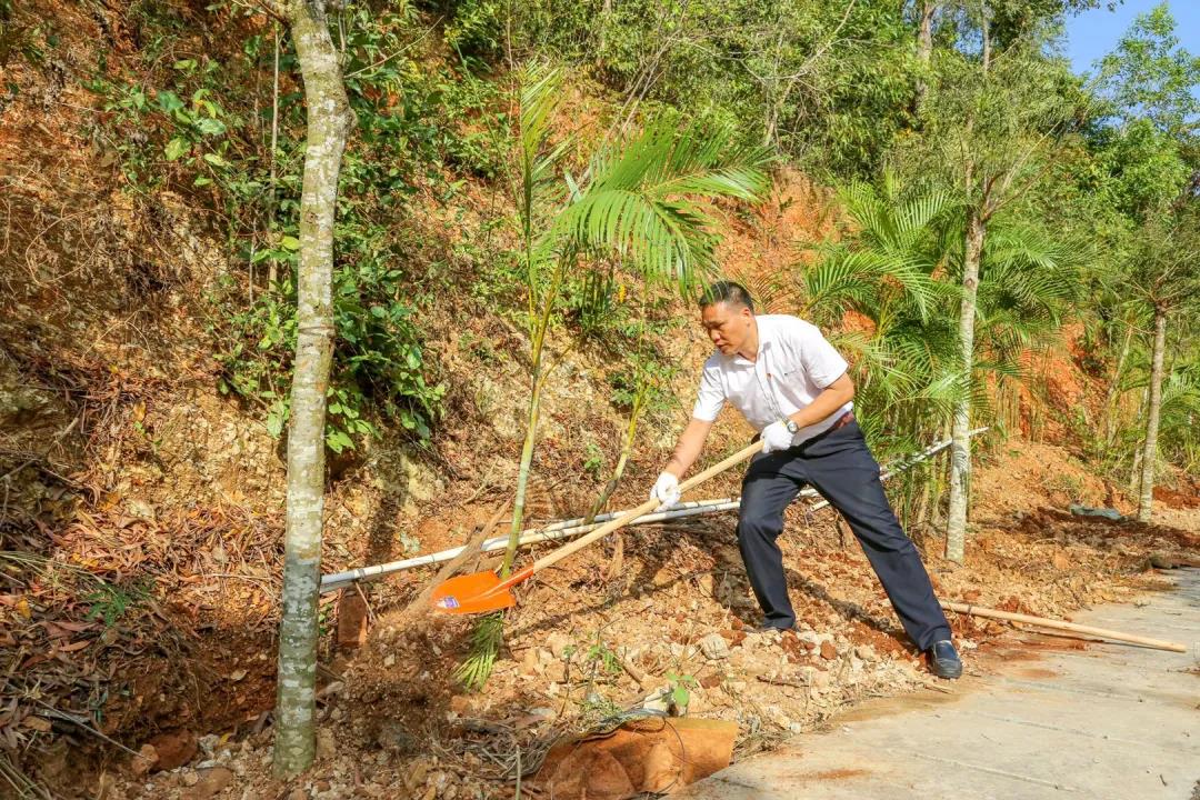 植樹活動現(xiàn)場熱火朝天,到達植樹地點以后,黨員同志們紛紛拿起鐵鍬、鋤頭開始植樹。大家分工合作、配合默契,干勁十足,有的揮鍬鏟土、有的扶樹填土、有的培土澆水,忙的不亦樂乎。經(jīng)過一個多小時的勞動,在大家的共同努力下,62棵鳳凰樹在鹿回頭景區(qū)新環(huán)山道路邊“安家落戶”, 為新環(huán)山道路增添了一片新綠,增加了勃勃生機。