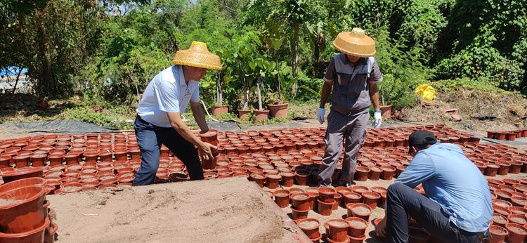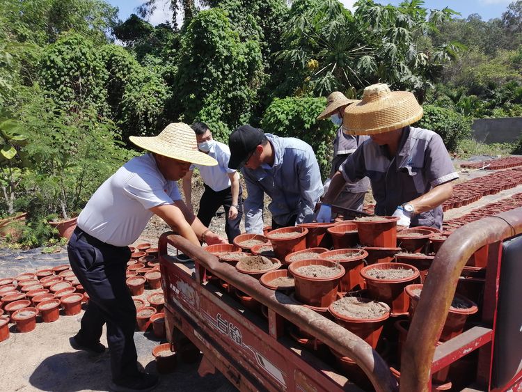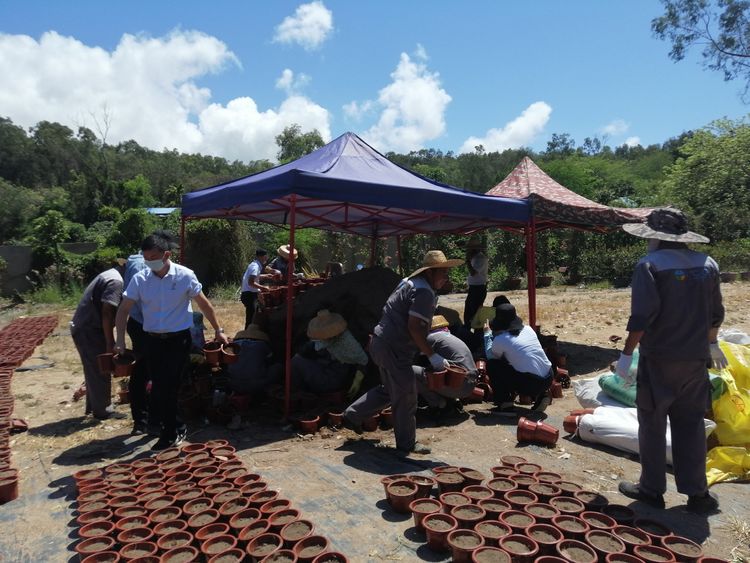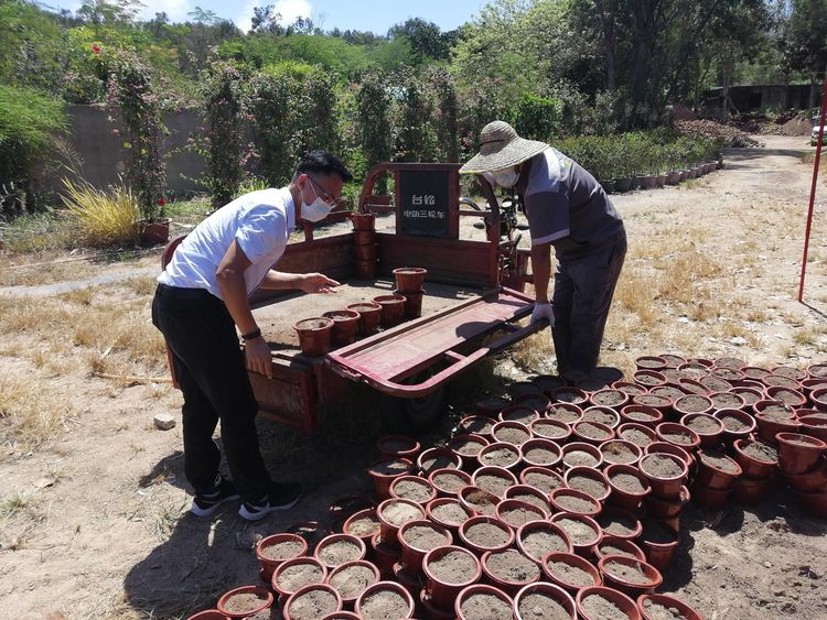 2021年5月10日上午,為迎接中國共產(chǎn)黨建黨一百周年的到來,為豐富學(xué)黨歷專題學(xué)習(xí)活動(dòng)和創(chuàng)建5A景區(qū)的需要,經(jīng)了解支部所屬部門園林環(huán)衛(wèi)部為紀(jì)念建黨1百周年將利用32000盆草本花卉扮靚"七一"期間景區(qū)花境氛圍,為踐行公司黨委提出的節(jié)約成本就是創(chuàng)收的工作目標(biāo),發(fā)揮苗圃自產(chǎn)自供及配送基地的功能,因此需要在4天內(nèi)完成上盆等育苗前的準(zhǔn)備工作,由于時(shí)間緊迫任務(wù)重,加之苗圃員工人數(shù)有限,為了緩解人員短缺問題,支部認(rèn)真謀劃活動(dòng)將群眾路線教育實(shí)踐活動(dòng)結(jié)合起來。把崗位貢獻(xiàn)與爭當(dāng)先鋒結(jié)合起來,激發(fā)黨員以飽滿的精神狀態(tài)助推景區(qū)創(chuàng)五A級(jí)景區(qū)工作。充分發(fā)揮戰(zhàn)斗保壘作用,不斷提高凝聚力和戰(zhàn)斗力,組織黨員參加園林環(huán)衛(wèi)部苗圃基地開展扮靚美化、亮化景區(qū),以實(shí)際行動(dòng)向建黨100周年獻(xiàn)禮!主題黨日活動(dòng)”。雖然頭頂炎炎烈日,汗流浹背但全體黨員你追我趕,全身心投入到備戰(zhàn)中協(xié)同園藝衛(wèi)生部苗圃組的員工突擊培土上盆,搬運(yùn)擺放苗壟等。經(jīng)過一個(gè)上午的突擊,在同志們的共同努下,共計(jì)培土上盆約25000個(gè)。