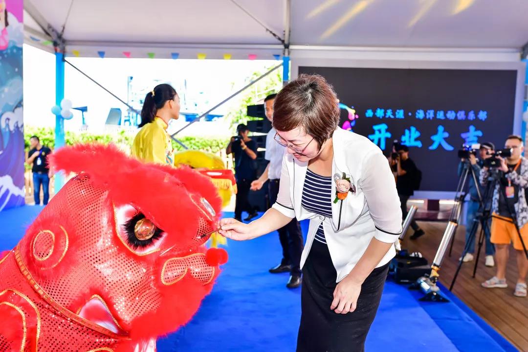 三亞市委常委、副市長譚萍在開業(yè)儀式現(xiàn)場為舞獅點睛