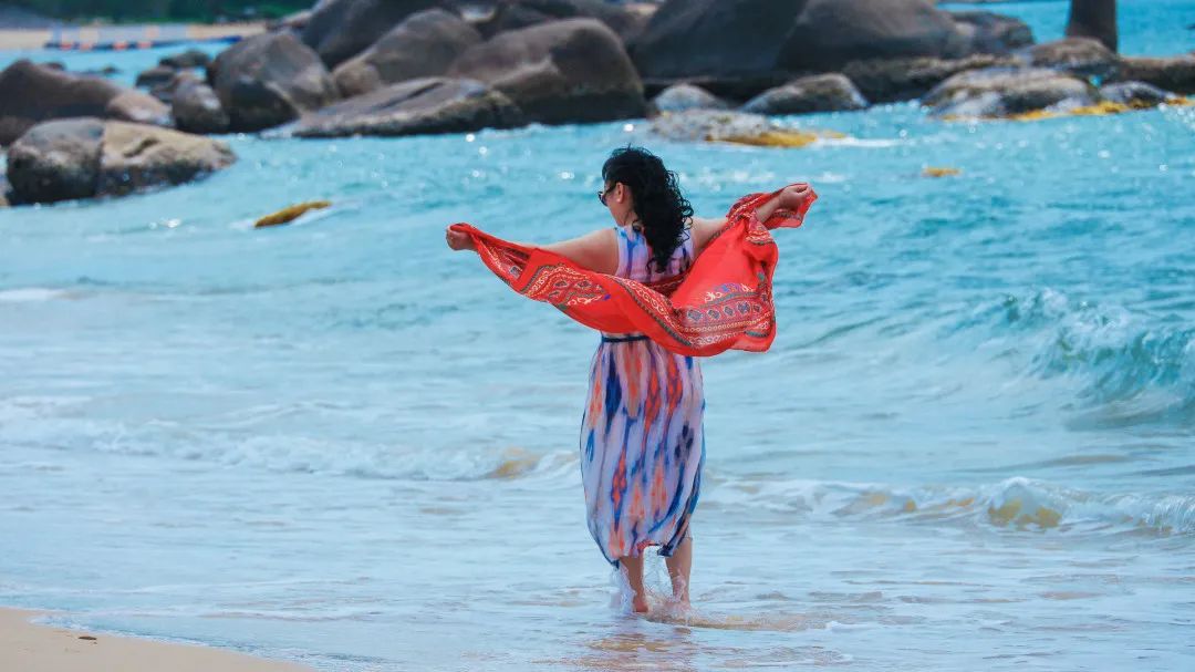 “前幾天通過新聞了解到天涯海角在婦女節(jié)免費(fèi)對(duì)海南本地女性游客開放,所以就約了家人一起出來逛逛,看看春景,收獲一下好心情”。
