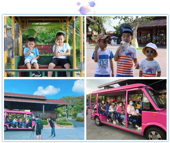 排隊(duì)坐上鹿回頭風(fēng)景區(qū)的粉色觀光車,家長和孩子們對著鏡頭歡快的揮手,鹿回頭風(fēng)景區(qū)的探索之旅正式開始。
