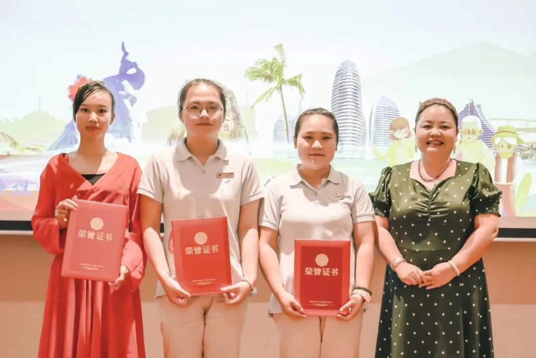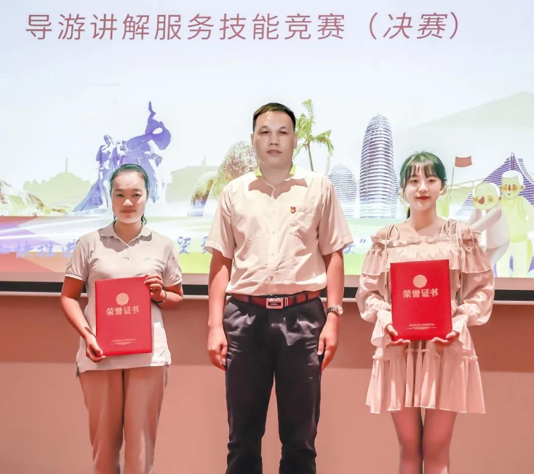天涯海角公司蘇藍(lán)星榮獲最佳風(fēng)采獎(jiǎng)、梁文婷榮獲最佳講解獎(jiǎng)、何培燕榮獲最佳語(yǔ)言才能獎(jiǎng)、鹿回頭公司邢海毅榮獲最佳才藝獎(jiǎng)。天涯海角公司王昌雅、大小洞天公司農(nóng)雯靜、秦丹榮獲三等獎(jiǎng)。天涯海角公司況丁箖、大小洞天公司林慧榮獲二等獎(jiǎng)。大小洞天公司周冰倩榮獲一等獎(jiǎng)。