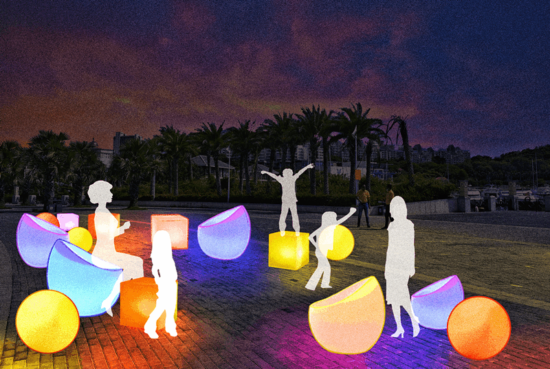 現(xiàn)場(chǎng)設(shè)置發(fā)光蹺蹺板、互動(dòng)秋千、多米諾骨牌等炫酷有趣的創(chuàng)新燈光互動(dòng)玩法,將根據(jù)人的動(dòng)作呈現(xiàn)不同的視覺效果,為大眾提供五彩斑斕,如夢(mèng)似幻的多重感官盛宴,更有I?Sanya海邊網(wǎng)紅打卡裝置,吸引市民游客駐足拍照,將打造成為城市新地標(biāo)。